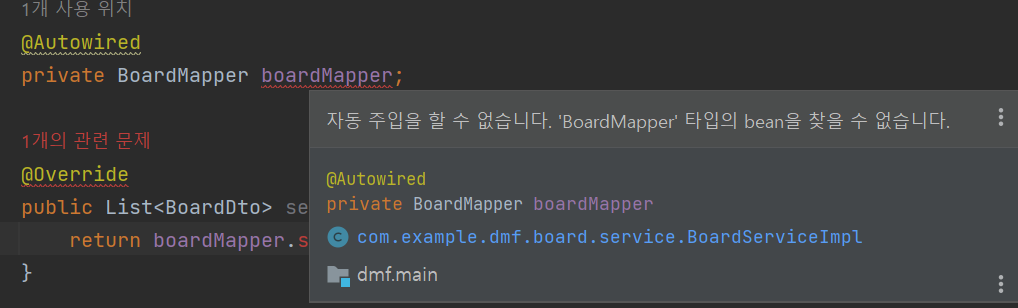 mapper.xml의 mapper.java -> interface가 빠졌거나 문제 생겨서 그럼.