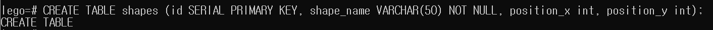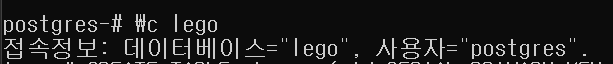 \c lego(백 슬래시 + c + 데이터베이스 이름)