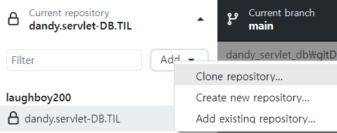 gitHistory 또는 폴더 만든 후 폴더 선택 후 clone 버튼 클릭