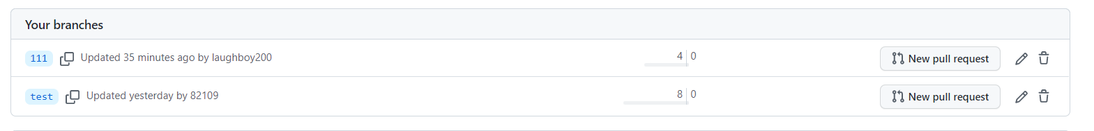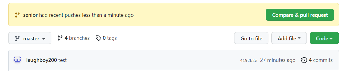 에서 상단에 Compare & pull request 또는