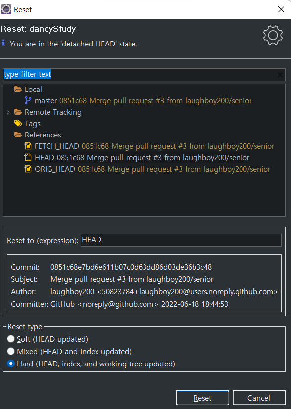 이전 git의 소스로 되돌리고 싶다면?