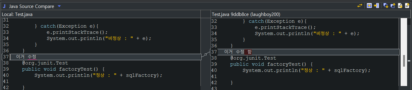 그래서 보통은 git으로 넘겨줄때 이클립스에서 서로 소스가 동기화가 되어야하니