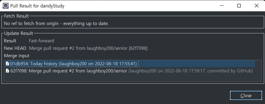 pull로 바뀐 소스 땡긴후