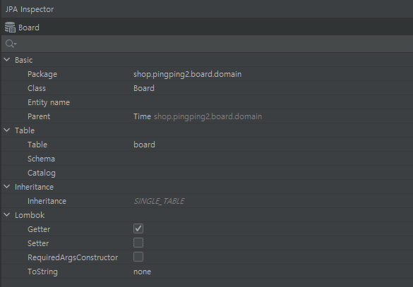 이 Time Entity를 만들어 놓고 다른 Entity(Board, ..)로부터 상속받아서 사용하게 된다.