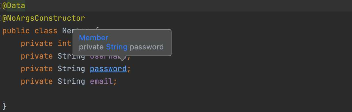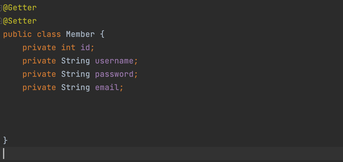보통의 경우, Java에서 Data Model을 정의할 때 getter, setter 메서드로 데이터에 접근하는 형태가 일반적이다.