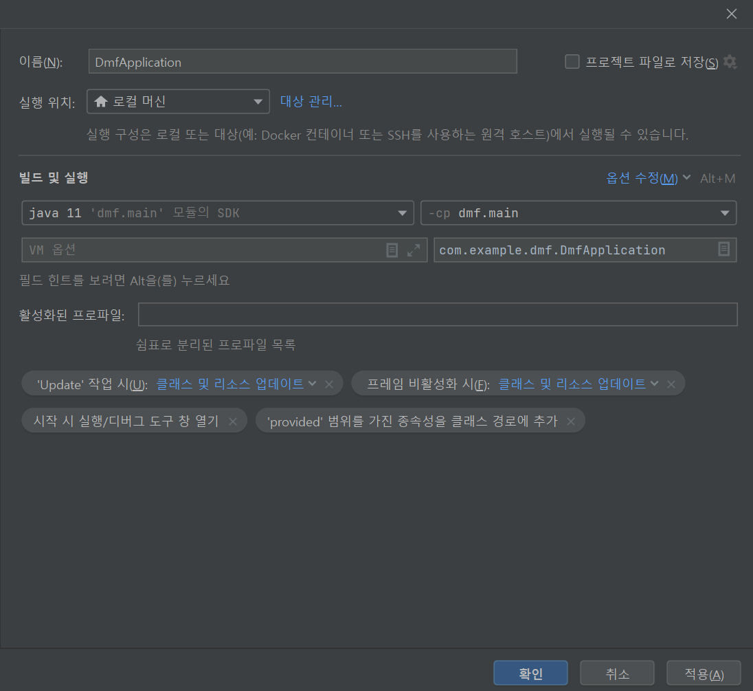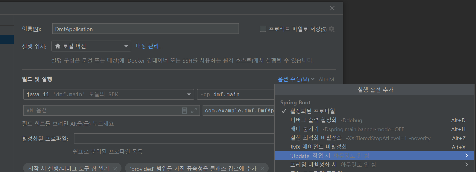 개발된 어플리케이션이 현재 실행 중인 경우에도 auto-make 시작되도록 허용